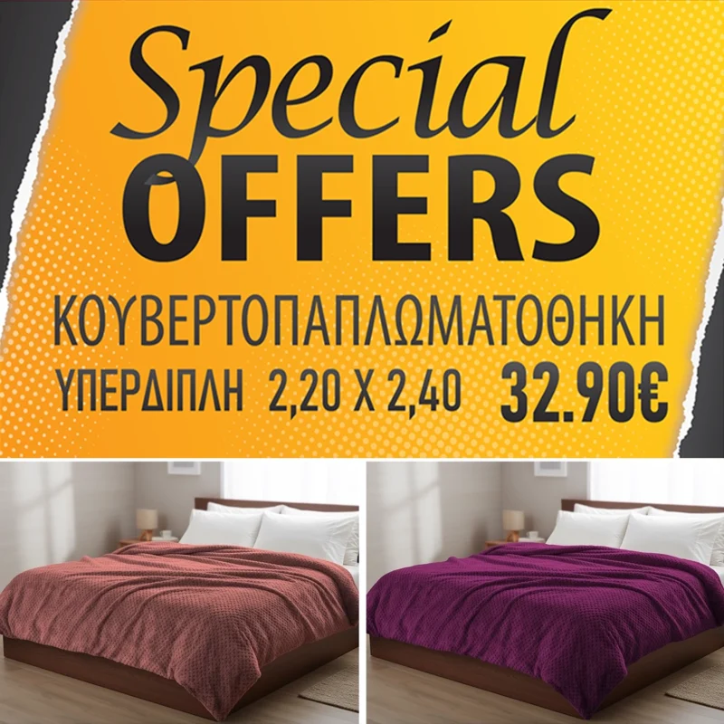 ΔΩΡΕΑΝ Μεταφορικά για παραγγελίες άνω των 49€ ΕΞΑΙΡΟΥΝΤΑΙ Προσφορές, ξενοδοχειακός ιματισμός, πετσέτες θαλάσσης, σετ σεντόνια 4 τμχ